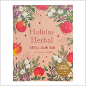 | ● ホリデーハーバル ミルキーバスソルト 200円 (税込220円) ![]() ![]() 特別な日を彩る、果実とハーブの香り広がるバスソルト |